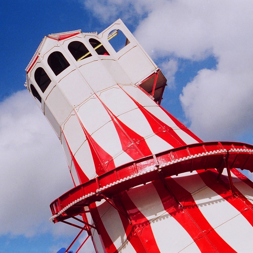 There is a big wheel, spinning lights. Carnival hues. Flags, mindful of heraldic patterns, stream and wave in the evening breeze. A pathway slopes up to a hilltop bar, lively and welcoming.