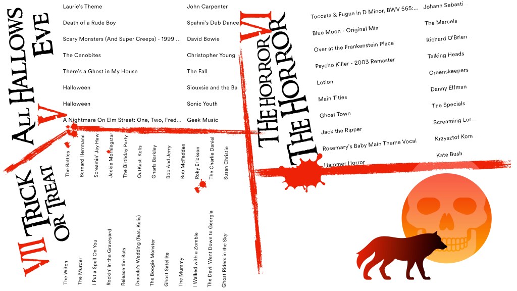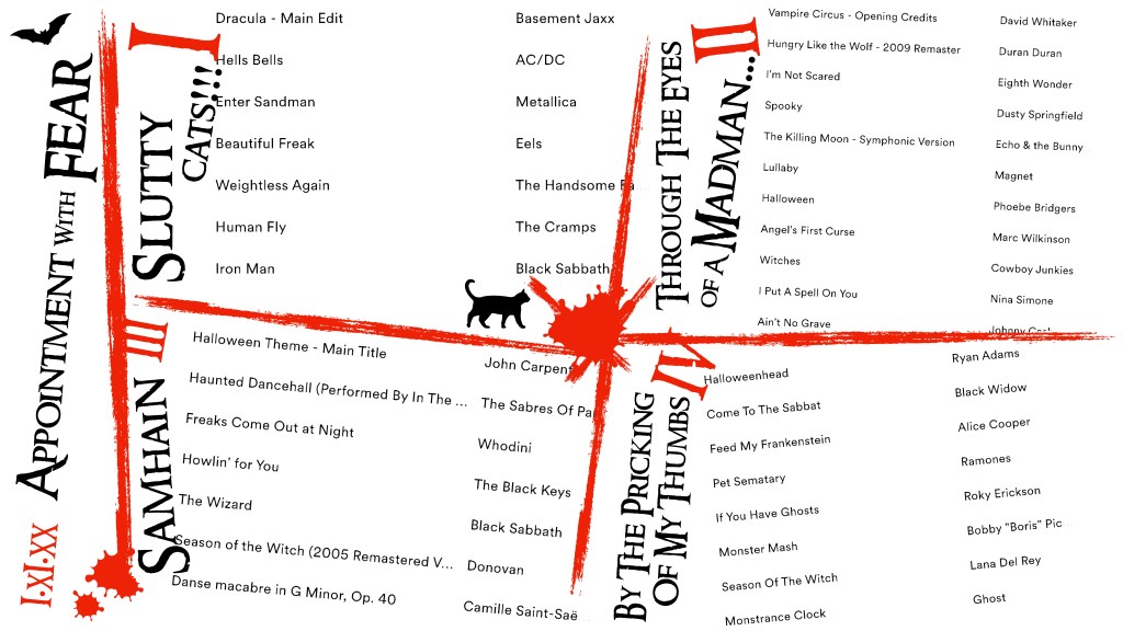 I am hosting this weekend and the subject is, appropriately enough, Halloween. In honour of my 70s TV memories, I have called the master playlist Appointment With Fear and created a series of graphic captions. For the master title I have borrowed an appropriately spooky screen grab from the aforementioned The Tell-Tale Heart. The design for each individual list has been informed by classic Hammer – this time using imagery from my own personal photographic archive.