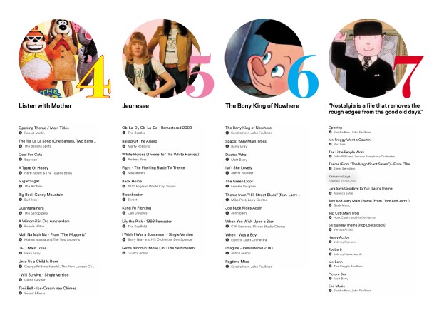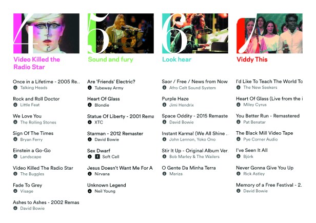 This one was all about the visuals. Songs that were made memorable by a particular TV performance or promo video. I took lots of screen grabs from YouTube.