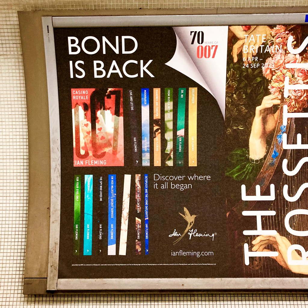 We rolled the branding out across all platforms including, bookmarks, coasters, a 32 page sampler book, press ads and posters. The latter currently adorning the tube and rail network in London. These showcase the new editions of the 14 Fleming Bonds (featuring lovely cover designs by Webb & Webb) along with the ‘70 Years of 007’ logo and a page turn device which emphasises the literary Bond.