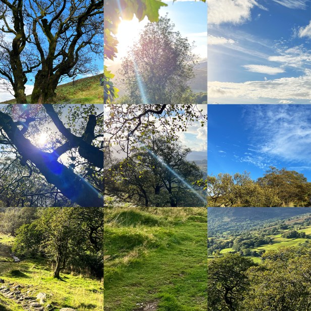 Refreshed, we plough onwards. Ascending constantly, we reach the summit of Wansfell Pike just after 4 O’clock. Our efforts rewarded by the breathtaking views. We stand, silently inspired, looking south towards the shimmering surface of Lake Windermere. Misty sunbeams punctuate layers of slowly drifting pale grey clouds, which part like curtains to reveal a turquoise heaven. It’s magnificent.