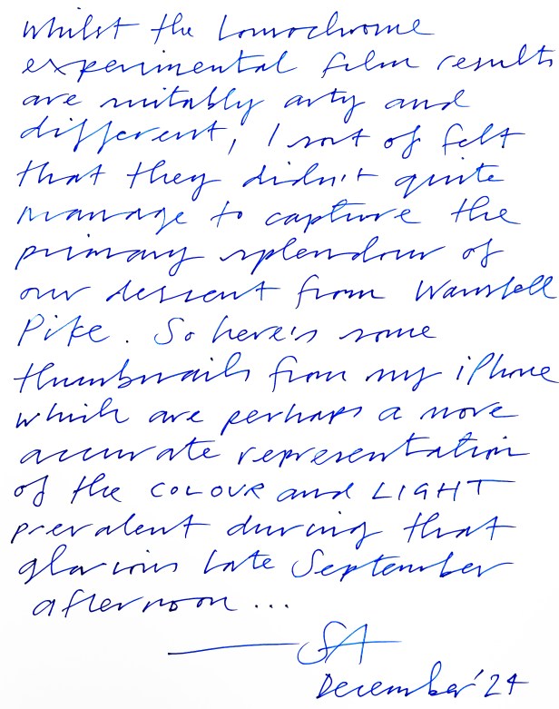 As ever on these adventures I am carrying my precious Fujica. On this occasion it’s loaded with a roll of Lomochrome Purple XR, a present from my youngest daughter. Lomochrome film stock manipulates the colour on the exposed negative. It’s a departure for a traditionalist like myself. An experimental diversion. I’m looking forward to seeing how it interprets the vibrant hues of the Lake District.