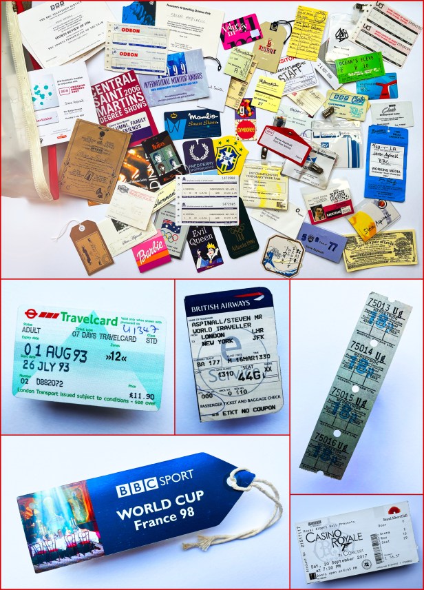 The printed residue of travel also features heavily. Boarding passes, train tickets, travelcards and more. I have lived in London for over 40 years. Having rode the underground thousands of times I could probably chart the design evolution of the humble tube ticket. It’s fascinating to see how these things change graphically over the years. Finding a restaurant bill from a long ago holiday somehow evokes warm memories of cocktails on some sunlit mediterranean terrace. Or that romantic train journey from Roma to Napoli.