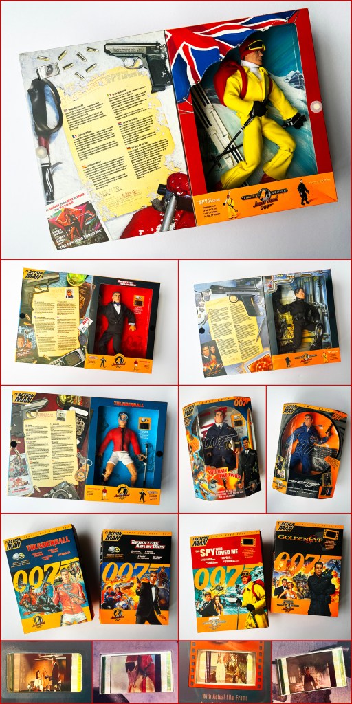 The limited edition 007 Action Man range are beautifully put together. Six in all, each one based on a different Bond film. The atttention to detail is lovely. I have kept them in their original packaging, some of which, amazingly, include an original 35mm anamorphic film frame. I still get a joyous buzz every time I take them down and look at them.